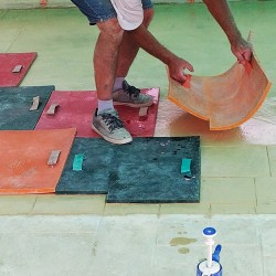 Combinable en 3 motifs pour varier les effets. Ce moule est utilisé pour marquer une empreinte aspect Dalle provençale, sur un dallage en béton frais.
